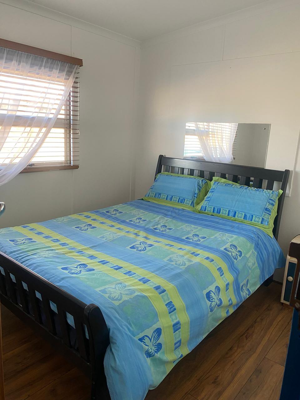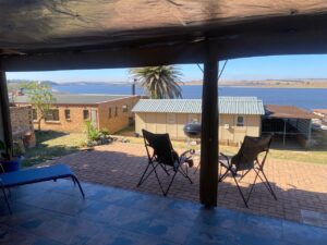 Delightful, 2-bedroom, one bathroom cozy cabin with accompanying shade cloth enclosed long garage (10m) which is ideal for a boat and jet ski Offering stunning views, this home is comfortable in its current form with recently renovated kitchen and bathroom, or to expand by adding on a new room and bathroom, only kitchen cupboard fixtures, stove and bathroom cupboard included.