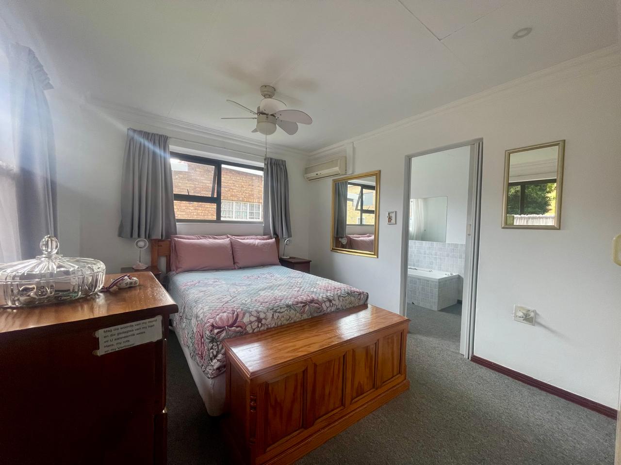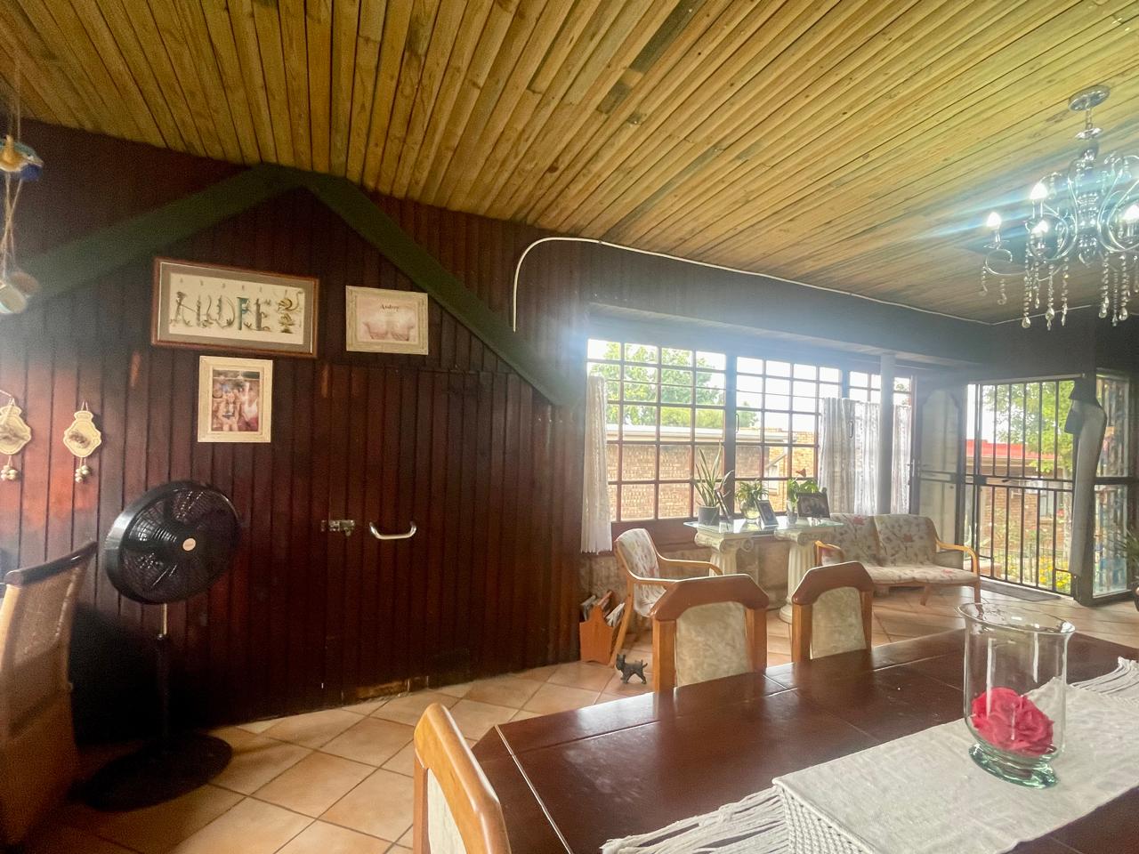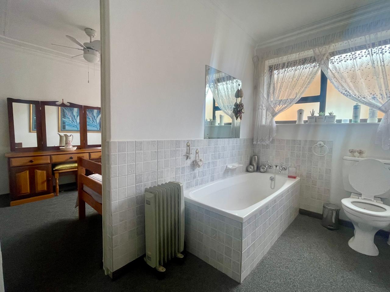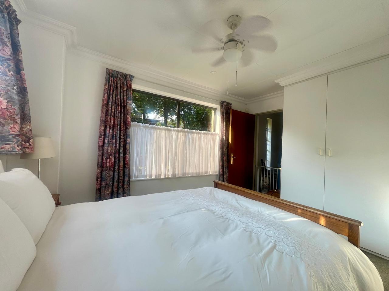 Cosy house with 4 bedrooms (all with BIC). Two bathrooms (all on suite to the 4 bedrooms) Large Lounge. Large dining room/entertainment area with a built-in braai. Kitchen with walk-in pantry. Laundry area. Enclosed area for small dogs. (10 x 2m paved and artificial grass). Solar system with some furniture, all curtains and mosquito nets.