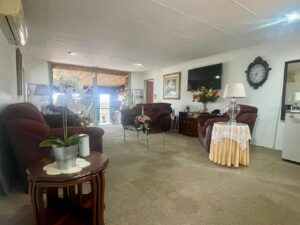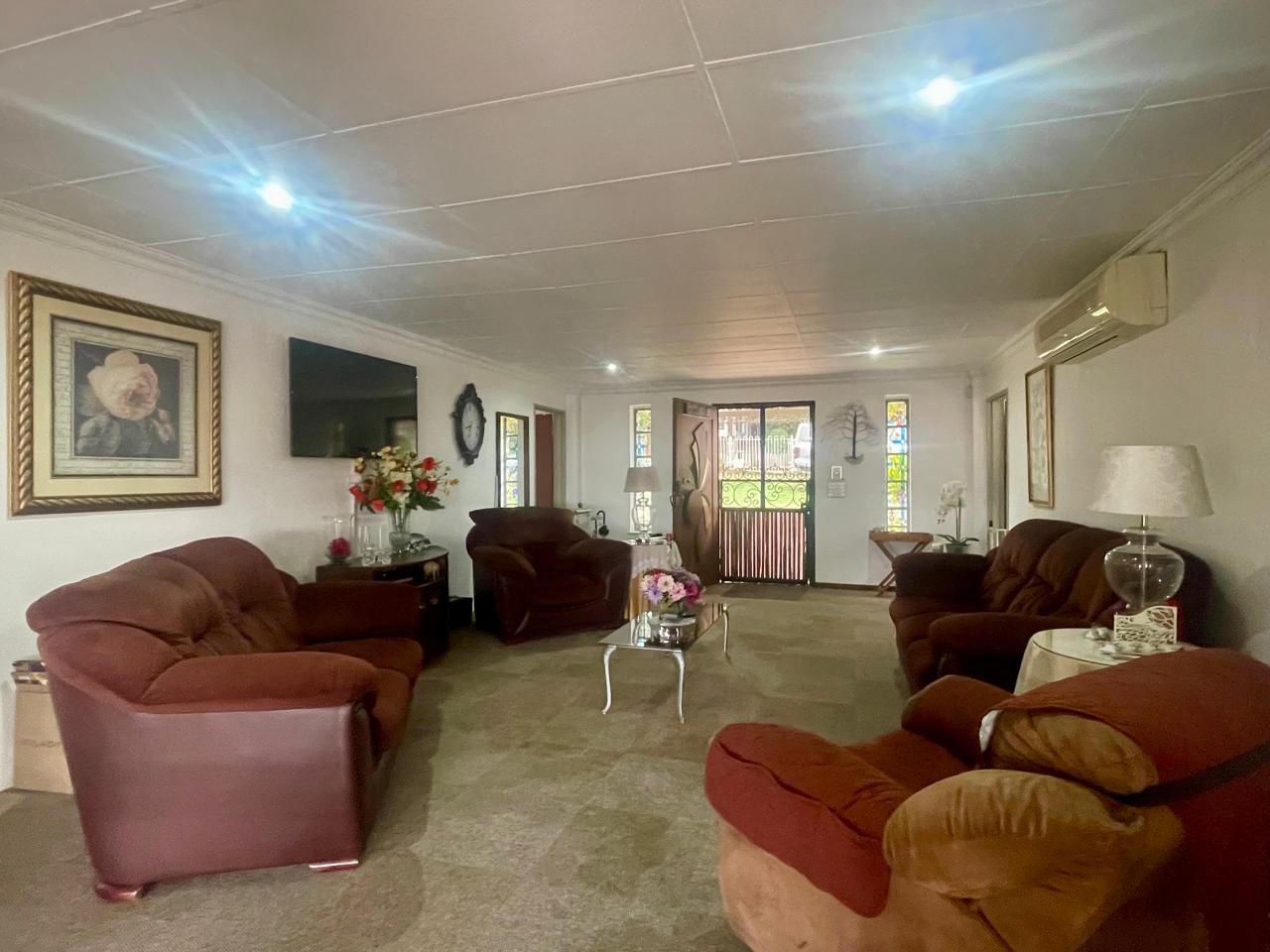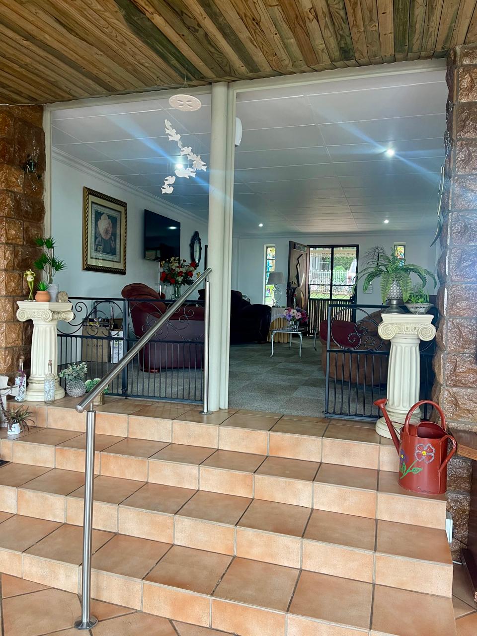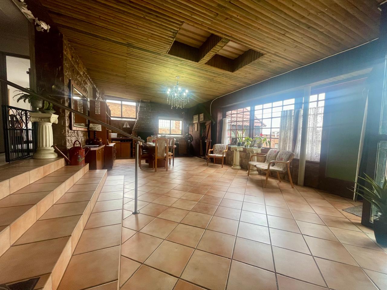 Cosy house with 4 bedrooms (all with BIC). Two bathrooms (all on suite to the 4 bedrooms) Large Lounge. Large dining room/entertainment area with a built-in braai. Kitchen with walk-in pantry. Laundry area. Enclosed area for small dogs. (10 x 2m paved and artificial grass). Solar system with some furniture, all curtains and mosquito nets.